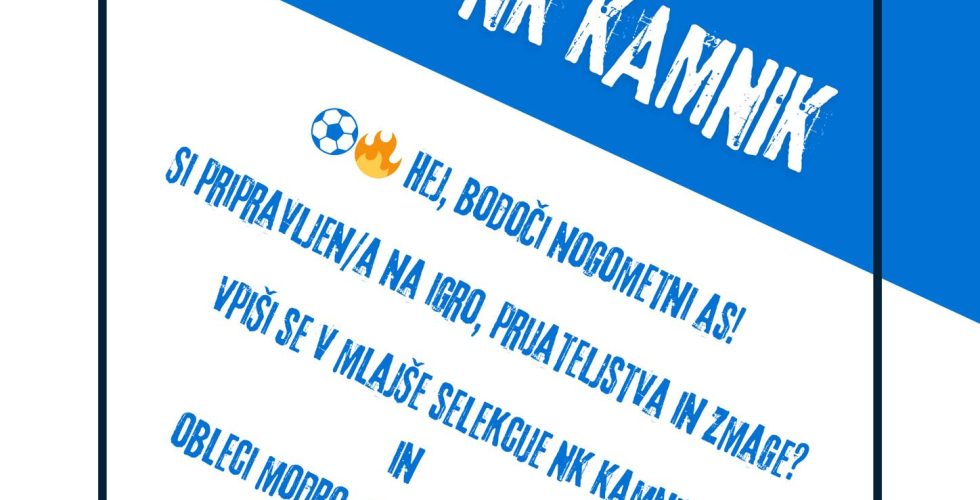 Nogometni klub Kamnik odpira vrata za nove člane! Vabimo otroke od 6. do 17....