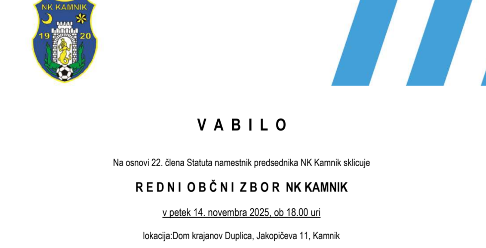 Na osnovi 22. člena Statuta namestnik predsednika NK Kamnik sklicujeR E D N I...